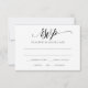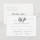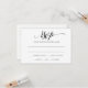 Esta hermosa y simple tarjeta de RSVP presenta un lujoso guión de caligrafía en negro. El diseño está configurado en negro, pero puedes cambiarlo a cualquier color que desees simplemente cambiando el color de fondo.