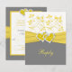Esta tarjeta de respuesta de boda floral amarilla, gris y blanca romántica y chic tiene una cinta amarilla IMPRIMIR con corazones unidos de joyas de diamantes y un broche de purpurina amarilla falsa que coincide con la invitación de boda que se muestra a continuación. Todo el texto y la elección del papel son personalizables. ***POR FAVOR TOME NOTA de que no hay elementos en relieve en esta tarjeta. Todo está impreso plano. ***POR FAVOR TOME NOTA de que si cambia la fuente o el tamaño de la fuente, puede alterar la forma en que se imprime su invitación. Se imprimirá tal como lo ve en su monitor, así que si tiene problemas de alineación o problemas de tamaño, por favor contácteme para obtener ayuda. No veré su invitación una vez que la ordene, y Zazzle NO editará nada (errores tipográficos, alineación,