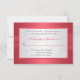 Esta tarjeta de respuesta RSVP de color rosa coral y gris plateado tiene una cinta con la leyenda "PRINTED ON" y corazones unidos con brillo y joyas falsas que coinciden con la invitación de boda que se muestra a continuación. Si necesita otros artículos que coincidan, por favor envíe su solicitud por correo electrónico a niteowlstudio@gmail.com