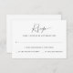 Diseño simple y elegante con caligrafía y fuentes modernas. Hay un conteo de invitados para que dos invitados respondan. La parte posterior tiene una opción de elección de comida y texto para alergias alimentarias (y también se puede quitar).