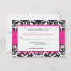 Esta tarjeta de respuesta de damasco en negro y blanco tiene una cinta rosa intenso IMPRIMIDA y un broche de corazones de diamantes unidos con brillo IMPRIMO que coincide con la invitación de boda que se muestra a continuación. Si necesita otros artículos que coincidan, o le gustaría tenerlo en otra combinación de colores, por favor envíe un correo electrónico a niteowlstudio@gmail.com con su solicitud.