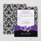 Esta tarjeta de respuesta de damasco negro y blanco tiene una cinta morada IMPRIMIDA y corazones de diamantes unidos con brillo IMPRIMIDOS que coinciden con la invitación de boda que se muestra a continuación. Si necesita otros artículos que coincidan o le gustaría en otra combinación de colores, envíe un correo electrónico a niteowlstudio@gmail.com con su solicitud.