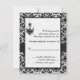 Esta tarjeta de respuesta de damasco negro y blanco con candelabros tiene una cinta IMPRESA y joyas que coinciden con la invitación de boda que se muestra a continuación. Si requiere algún producto coincidente, por favor envíe un correo electrónico a niteowlstudio@gmail.com.