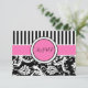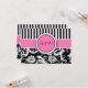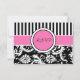 Esta moderna tarjeta de respuesta con rayas rosadas, negras y blancas y damasco floral coincide con la invitación de boda que se muestra a continuación. El texto y el tipo de papel son personalizables. ****POR FAVOR, asegúrese de que todo el texto esté centrado y dimensionado exactamente donde lo desee, ya que se imprimirá exactamente como lo ve en su monitor. No lo veré, y Zazzle no editará nada, así que si necesita ayuda, por favor envíeme un correo electrónico ANTES de realizar su pedido. Si necesita algún artículo coincidente, por favor envíe su solicitud a niteowlstudio@gmail.com.