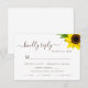 Mantenga la planificación de su boda sin problemas con esta tarjeta de respuesta con tema de girasol. Diseñada para coincidir con el conjunto de su boda rústica. Incluye espacio para los nombres de los invitados, respuesta de asistencia y selección de comida. Una forma sencilla y elegante de recopilar todos los detalles que necesita.