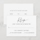 Diseño simple y elegante con caligrafía y tipografía modernas. Hay un conteo de invitados para que un invitado responda. La parte posterior tiene una opción de elección de comida y texto para alergias alimentarias.