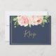 Diseñada para coordinar con nuestra colección de boda Bloomsbury, esta tarjeta de respuesta de boda chic presenta un hermoso arreglo floral de acuarela en tono rosado y letra a mano con pincel de escritura. Personalízala con tus detalles de manera fácil y rápida, simplemente presiona el botón de personalizar para reorganizar y dar formato al estilo y ubicación del texto. (c) The Happy Cat Studio