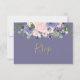 Diseñada para coordinar con nuestra colección de bodas Chelsea, esta tarjeta de respuesta de boda chic presenta un hermoso arreglo floral de color púrpura lavanda y sonrojo de acuarela y tipografía de pincel de mano. Personalízala con tus detalles de manera fácil y rápida, simplemente presiona el botón personalizar para reorganizar y dar formato al estilo y ubicación del texto. (c) The Happy Cat Studio