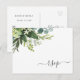 Esta tarjeta de respuesta presenta eucalipto pintado a la acuarela, hojas verdes y caligrafía moderna. Para una personalización más avanzada de este diseño, haga clic en el enlace "Personalizar más". También hay artículos coincidentes disponibles.