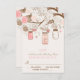 Tarjeta de respuesta personalizable con ilustración caprichosa de frascos mason, flores, pájaros de amor y jaulas para pájaros en rosa y marrón. Es perfecta para eventos con temática shabby chic y vintage.