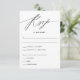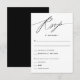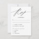 Un diseño de tarjeta de respuesta simple perfecto para su boda. Con un guión minimalista y un texto limpio, esta tarjeta facilita a los huéspedes el RSVP para su boda. Los clientes pueden aceptar, rechazar y elegir sus opciones de restauración.