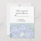 Agradable ramo floral de hortensias apenas azules acentúa esta carta de respuesta. Estacionamiento de sus invitados estarán emocionados de firmar y regresar. Encuentra invitaciones y servilletas para que coincidan. Personalice como desee.
