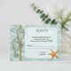 Invitación de respuesta de boda con tema náutico o de playa o tarjeta de inclusión con dos caballitos de mar en un fondo de agua con una estrella de mar. Esta tarjeta coincide con varias invitaciones de boda y novia.