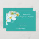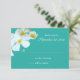 Personalizada, azul laguna con flores hawaianas blancas y texto blanco, esta tarjeta de respuesta plana de 3x5 pulgadas vendrá con sobres blancos. Coincide con la invitación de abajo.