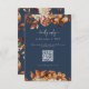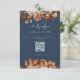 Tarjeta de respuesta de la caída azul de la marina. Añada un toque moderno y elegante a su suite boda con esta tarjeta RSVP, diseñada para complementar las "Invitaciones a la Boda Azul y Terracota de la Marina". Con la frase "Kindly Reply" en un guión elegante y adornada con hojas de acuarela pintadas a mano, dahlias y rosas en cálidos tonos otoñales, esta tarjeta ofrece estilo y comodidad intemporales. Los enlaces de código QR incluidos son directamente a su sitio web boda, lo que facilita a los huéspedes la respuesta con sólo un escaneo. Personalizar con tus detalles y haz que el proceso RSVP sea tan transparente y elegante como el resto de tu celebración. Deja que tus invitados respondan con facilidad —y un toque de belleza otoñal.
