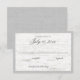 Tarjeta de respuesta de boda de abedul de madera plateada para complementar la invitación a bodas de ciervos en monograma de guerra. Rústicas inspiraciones de abedul de campo y burlap para su evento de boda de bosques o graneros.