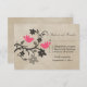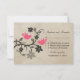 Tarjeta de respuesta Boda Floral Lovebirds dulce y caprichoso con una cascada de flores sobre una vid giratoria y un par de aves amorosas magenta con un aspecto vintage texturizado en el fondo de arte digital en beige. Esta preciosa tarjeta RSVP de boda es perfecta para un boda de primavera o verano. Fácil de personalizar, simplemente añada los detalles de su boda. Haga clic en "Personalizar" para encontrar más opciones de personalización.