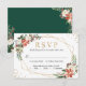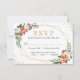 Tarjeta de respuesta de marco geométrico floral marfil Poinsettia dorado.