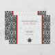 Negro y blanco con acentos rojos, esta elegante carta de matrimonio damasquinada o rsvp tiene un toque vintage. Ideal para un boda de estilo vintage con un tema de color negro, blanco y boda rojo. El texto es fácil de personalizar. Sólo hay que cambiarlo usando la opción de personalización. Para cambiar el tipo de letra, el tamaño de la fuente, el color de la fuente y/o la posición del texto, puede hacerlo utilizando la opción personalizar it. Esta respuesta podría utilizarse para varias ocasiones especiales, como aniversario, jubilación o cumpleaños especial. Puede cambiar el texto y utilizarlo como invitación en sí mismo o puede utilizarlo como dirección, recepción y/o tarjeta de alojamiento. Las líneas también se pueden quitar utilizando el personalizar.