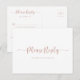 Esta tarjeta postal de respuesta de menú de caligrafía en rosa dorado es perfecta para una boda rústica. El diseño simple y elegante presenta tipografía de letra clásica y elegante en rosa dorado y blanco.