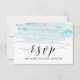 Esta tarjeta de respuesta de menú de azul y dorado acuarela es perfecta para una boda elegante. El diseño lujoso presenta una textura de acuarela azul claro con un toque de hermoso brillo dorado falso y una fuente de letra de caligrafía moderna. Esta tarjeta de respuesta de boda convenientemente pregunta a los invitados qué comida les gustaría en su recepción.