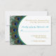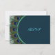 Esta tarjeta de respuesta personalizable de plumas de pavo real azul oscuro coincide con las invitaciones de boda que se muestran a continuación. El texto y el tipo de papel son personalizables.