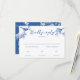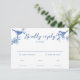 La tarjeta de respuesta de bodas de primavera de pájaros azul Delft está diseñada para coordinar con nuestra colección de invitaciones de bodas de primavera de pájaros azul Delft. Con elegantes pájaros azules posados en una delicada ilustración de flores de ramita, esta invitación captura la belleza encantadora de la boda de primavera. Artículos coincidentes disponibles.