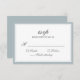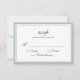 Tarjeta de respuesta de RSVP de boda clásica. Letra tradicional elegante en gris oscuro dentro de un doble borde suave de azul polvoriento claro. Parte posterior azul. Para ajustar el diseño, haga clic en Personalizar, Editar texto, luego haga clic y arrastre las secciones de texto a las ubicaciones deseadas. Use Cntrl para seleccionar y mover varias secciones a la vez.