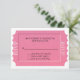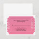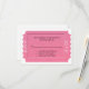 Tarjeta de respuesta de RSVP de evento de propósito general, diseñada con un diseño de boleto rosa, sobre un fondo blanco. El texto en negro está listo para personalizarse para su evento. Ideal para bodas, cumpleaños, aniversarios y otros eventos de ocasión especial.