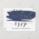 Esta tarjeta de solicitud de canción de acuarela azul marino y dorado es perfecta para una boda elegante. Este diseño abstracto de noche estrellada presenta un dramático toque de acuarela azul marino superpuesto con hermoso brillo dorado falso. ¡Construya su lista de invitados de boda y su lista de canciones de baile al mismo tiempo! Esta tarjeta de respuesta de boda convenientemente pregunta a los invitados si podrán asistir a su boda y también qué canción los hará bailar.