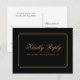 Una elegante tarjeta de respuesta con tema art déco con tipografía chic sobre fondo negro. El reverso incluye tus datos y una divertida solicitud de canción para invitados. Diseñada por Thisisnotme©