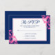 Un azul marino preppy moderno con tarjeta de respuesta RSVP de boda de girasol rosado. ¡Fácilmente personalizar con tus detalles!