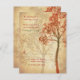 Tarjeta de respuesta RSVP de boda de árbol de otoño. El diseño representa un árbol de colores otoñales de naranja quemado y verde situado sobre un fondo de pergamino de época crema. También se podría utilizar una tarjeta de recepción, dirección o alojamiento con cambios en el texto.