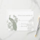 La llamada de un pavo real se trae a la mente en esta tarjeta de respuesta Un ilustracion clásico de un pavo real en un árbol en tonos de verde salvia encuadra tu texto de respuesta mientras que la rama florida se usa como marca de agua tanto en la parte delantera como en la trasera. Disponible en colores alternativos con una gama de productos coincidentes.