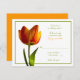 El texto y el color de fondo de esta respuesta del boda de tulipán naranja o de la tarjeta RSVP son totalmente personalizables. Puede cambiar el texto utilizando la opción de personalización. Para realizar cambios más extensos en la tarjeta, como cambiar el color de fondo, el tipo de letra, el color de la fuente o el diseño del texto, elija la opción personalizar. Esta es una gran carta de respuesta para una boda de primavera, verano o otoño con un tema de tulipán. Sencillo, bonito y alegre. Actualmente, esta invitación es personalizada como una tarjeta de respuesta del boda, pero también serviría como una invitación para una ducha de novia, cumpleaños especial, aniversario o fiesta de jardín. Todo lo que necesita hacer es cambiar la redacción. Además, con cambios en el texto, se puede convertir en una tarjeta de recepción, dirección y/o alojamiento. Consulte la invitación de matrimonio que aparece a continuación.