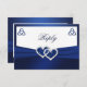 Esta tarjeta de respuesta RSVP del nudo de amor celta con aspecto PLISADO FALSO azul marino y blanco tiene una cinta IMPRIMIR y corazones con joyas de diamantes y brillo FALSO que coincide con la invitación de boda que se muestra a continuación. Si necesita otros artículos coincidentes, por favor envíe un correo electrónico a niteowlstudio@gmail.com con su solicitud.