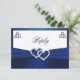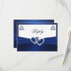 Esta tarjeta de respuesta RSVP del nudo de amor celta con aspecto de pliegues FAUX azul marino y blanco tiene una cinta IMPRIMIR y corazones con joyas de FAUX purpurina y diamantes que coinciden con la invitación de boda que se muestra a continuación. Si necesita otros artículos coincidentes, envíe su solicitud a niteowlstudio@gmail.com.