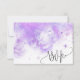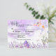 Encanta a tus invitados con la tarjeta de respuesta personalizada Elegante Mariposa Dorada y Morada. Este diseño impresionante presenta mariposas monarca de color morado claro que revolotean elegantemente en medio de acentos florales rústicos de lavanda y dorado rosa. Perfecta para bodas elegantes, baby showers, quinceañeras, fiestas de cumpleaños de sweet 16 y más, esta tarjeta combina el encanto de la acuarela lila con un toque sofisticado de caligrafía moderna.