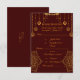 Completa tu suite de papelería de boda con esta elegante tarjeta de respuesta de color granate y dorado. Con un rico fondo granate acentuado por un lujoso detalle ornamental dorado, esta tarjeta de respuesta complementa perfectamente temas de boda tradicionales o clásicos. Totalmente personalizable para respuestas de invitados, seguimiento de asistencia y preferencias de comida, asegurando estilo y funcionalidad.