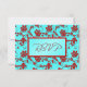 Esta tarjeta de respuesta de color rojo y azul aqua coincide con la invitación de boda que se muestra a continuación. El texto y el papel del reverso son totalmente personalizables. Si necesita otros artículos coincidentes, envíe su solicitud por correo electrónico a niteowlstudio@gmail.com.