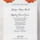 Invitación de boda simple de gerbera de margarita naranja y tarjeta de RSVP desglosable todo en uno. Diseño de tarjeta de RSVP desglosable de invitación de boda simple que presenta una hermosa gerbera de margarita naranja o flor de gerbera naranja. Es de color naranja con un simple fondo blanco. Una excelente opción de flor para una boda de verano u otoño. También puedes elegirlo para una boda rústica y una boda campestre. También puede lucir muy moderno y elegante.