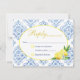 Envía información adicional para tu evento con esta hermosa tarjeta de detalles italianos de limón y baldosa azul. Con un estilo toscano de Positano, este diseño es perfecto para cualquier evento de primavera o verano.
