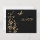 Tarjeta de respuesta floral negra y dorada con mar