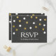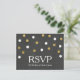 Tarjeta postal de respuesta de la fiesta de confeti dorado y blanco de pizarra. Artículos coincidentes disponibles.