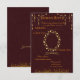 Completa tu suite de papelería de boda con esta elegante tarjeta de respuesta en color marón y dorado. Con un rico fondo burgundy y acentos dorados sofisticados, este diseño refinado permite a los invitados confirmar su asistencia con estilo. Perfecta para bodas formales, tradicionales o indias, la plantilla es totalmente personalizable y coordina perfectamente con invitaciones, Save the Date y tarjetas de agradecimiento.