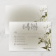 Este diseño de tarjeta de respuesta boda presenta un ramo sencillo y suave de vegetación botánica en un suave óvalo borroso verde sobre un fondo blanco. Es delicado y elegante. Creado por Simply Farmhouse Press, forma parte de la suite de naipes Boho Greenery Modern Floral Boda.
