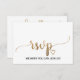 Esta sencilla tarjeta de respuesta RSVP de sitio web de boda con caligrafía en oro es perfecta para una boda elegante. El diseño clásico romántico presenta tipografía con lámina de oro falsa y un hermoso corazón dorado. Personalice la tarjeta de respuesta en línea con su RSVP por fecha y la dirección del sitio web de la boda. Si sus invitados no necesitan una contraseña del sitio web, puede reemplazar el texto con un mensaje corto y dulce para sus invitados o un método alternativo de RSVP.