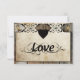 Tarjeta de confirmación de boda country western rústica. Una colorida tarjeta de recepción de boda con respuesta de boda rústica que presenta un fondo de madera marrón desgastada. Un frente de papel desgastado adornado con florituras elegantes sostiene el texto y los detalles de la respuesta de su boda. Puede encontrar botas de vaquero, un sombrero de vaquero, cuentas de turquesa y corazones en esta invitación, lo que la hace especial y única para esa boda de vaquero. Una silueta de un niño y una niña vaqueros puede estar en el frente de esta invitación y las palabras "amor" en la parte posterior. Tan hermoso y sería un complemento impresionante para la planificación de su boda. (COLORES PERSONALIZADOS Y PERSONALIZACIÓN DISPONIBLE, POR FAVOR CONTACTE CONMIGO A TRAVÉS DEL BOTÓN