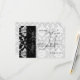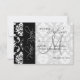 Tarjetas de RSVP para invitaciones de boda con damasco negro y blanco y monograma gris y texto "por favor responda" en blanco en una fuente de letra elegante en espiral. Estilo horizontal. Personalice con las indicaciones del modelo o personalícelo con más opciones de edición.com y WhiteWhimsicalWeddings.blogspot.com. Personalice con su monograma, nombres e información de RSVP. Además, elija entre una variedad de fuentes y hermosos papeles para hacer que las tarjetas de respuesta de su invitación de boda sean ¡FABULOSAS! Diseño de Elke Clarke ©2011. Gráficos licenciados para uso comercial.