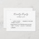 Nuestra tarjeta de respuesta para la boda es la adición perfecta para el conjunto de invitaciones de boda contemporáneas. Con su diseño elegante y simplicidad, esta tarjeta seguramente dejará una impresión duradera en sus invitados. Con las palabras "Kindly Reply" delicadamente escritas en una elegante letra, estas tarjetas de respuesta transmiten un sentido de sofisticación y gusto refinado. Sus invitados estarán encantados con la tipografía romántica y apreciarán el toque moderno que aporta a la papelería de su boda. Para asegurarse de que todos estén atendidos, nuestras tarjetas de respuesta también proporcionan espacio para opciones de menú. Esta adición considerada permite a sus invitados especificar sus preferencias de comida, lo que facilita la planificación de una deliciosa experiencia culinaria en su día especial. No solo estas tarjetas de respuesta para la boda exudan encanto y elegancia, sino que también ofrecen practicidad y eficiencia en la gestión de su lista de invitados. Al proporcionar un sobre de devolución con la dirección preimpresa, sus invitados no tendrán problemas para enviar sus respuestas con prontitud. Haga que las preparaciones de su boda sean fáciles y agregue ese toque de modernidad a su día especial. Ordene sus tarjetas de respuesta hoy y impresione a sus invitados con su impecable gusto.